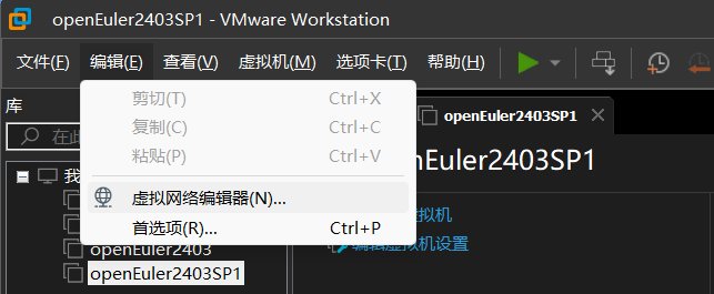 (1)打开VVMware WorkStation,选中编辑栏下的虚拟网络编辑器