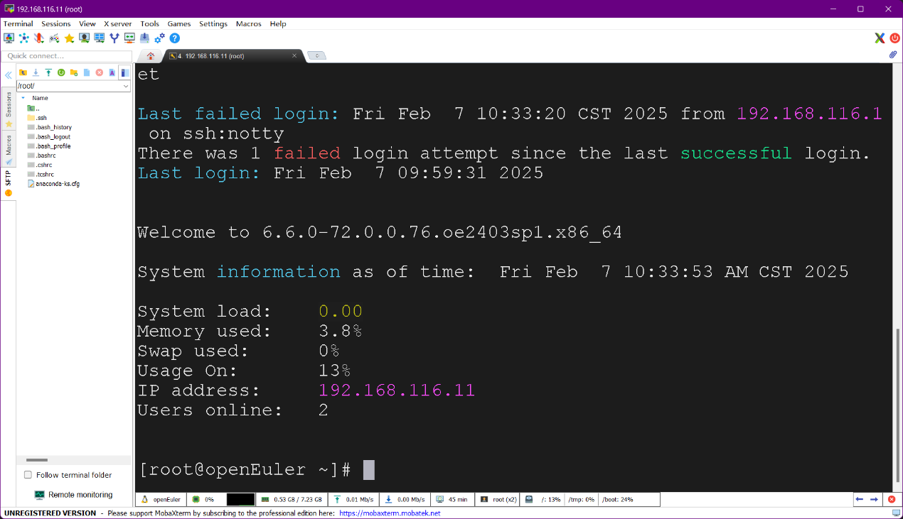 (4)root账号成功登录openEuler