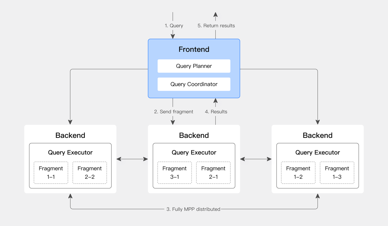 - 点查询短路径优化(Short-Circuit Path): 跳过传统 MPP 查询框架的复杂调度流程,直接通过轻量级执行计划(Short-Circuit Plan)快速返回结果。例如,FE 解析 SQL 后,若查询符合条件(如基于主键的等值查询),直接生成短路径计划,减少 FE 资源消耗和网络开销。