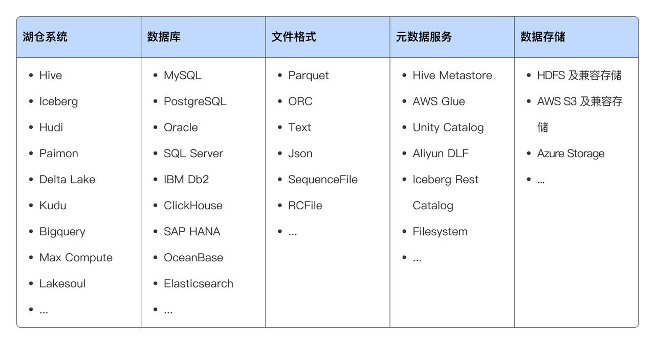 - 湖仓查询和计算加速:作为查询引擎直接查询 Iceberg, Hudi, Paimon, DeltaLake, Hive 等湖仓中的数据,在不移动数据的情况下,实现查询分析的数倍加速。