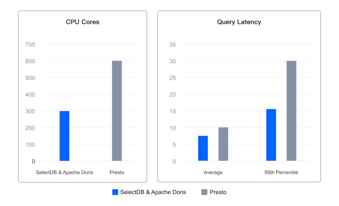 实际用户场景中,在使用一半资源的情况下,相比 Presto 平均查询延迟降低了 20%,95 分位延迟更是降低 50%,达到了降本增效的目的。
