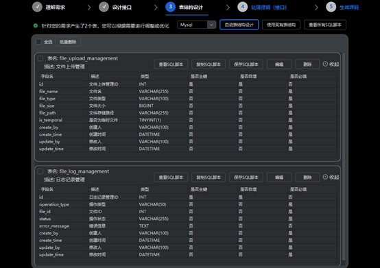 紧接着,在软件设计阶段,一站式生成缜密的接口与表结构设计。就拿在线预订系统来说,迅速构建出用户信息表、预订信息表等数据库表结构,同时生成各个功能模块间交互的接口设计,每一处设计都贴合行业最佳实践,为后续开发筑牢根基。