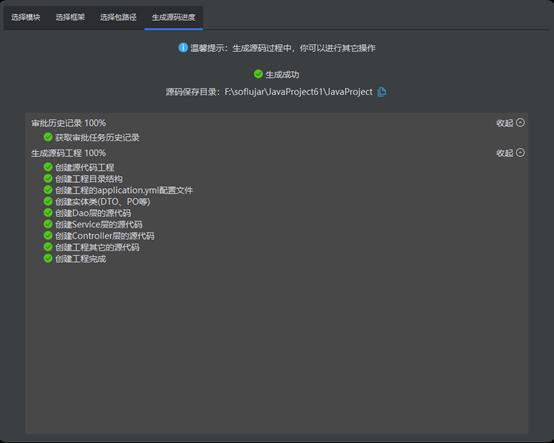进入代码生成环节,飞算 JavaAI 生成的代码不仅涵盖 API 接口定义、参数验证逻辑以及数据库操作代码片段,而且代码质量极高,完全遵循 Java 语言规范,高效且安全。此外,它支持 Maven、Gradle 等常见项目构建方式,一键就能生成包含配置类文件、Java 源代码目录资源文件及测试资源在内的一整套完整工程源码,实现从需求到可运行项目的一站式交付。