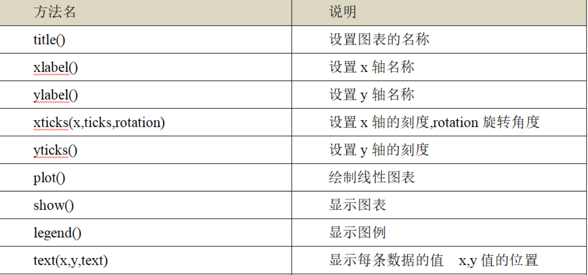 在使用Matplotlib绘制图形时,其中有两个最为常用的场景。一个是画点,一个是画线。pyplot基本方法的使用如下表。