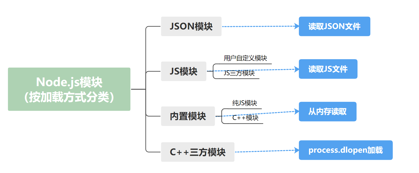 经分析,按加载方式分类 Node.js 模块,可以帮助我们更好地记忆、更清晰地理解 node 模块加载过程以及运行原理知识。