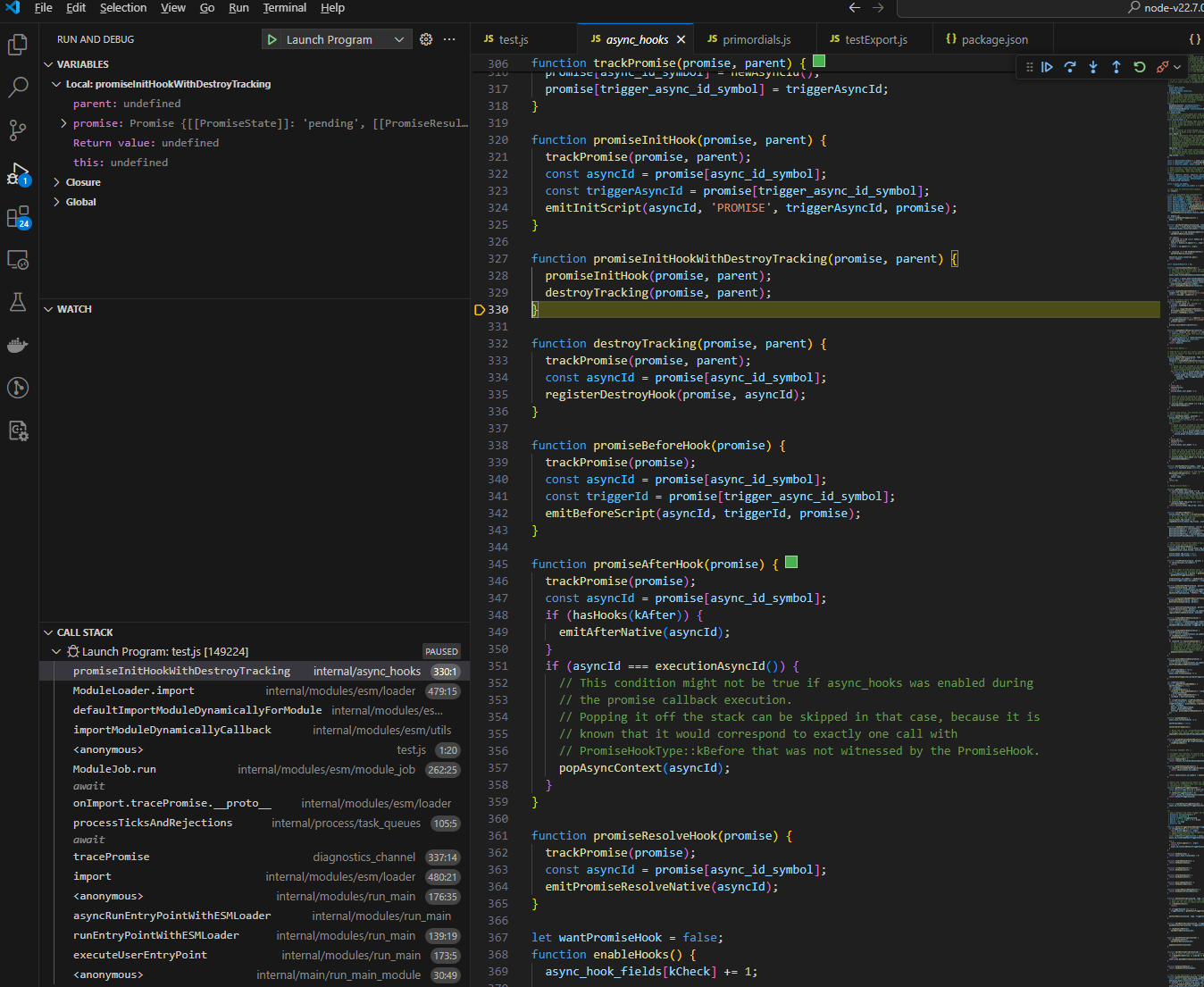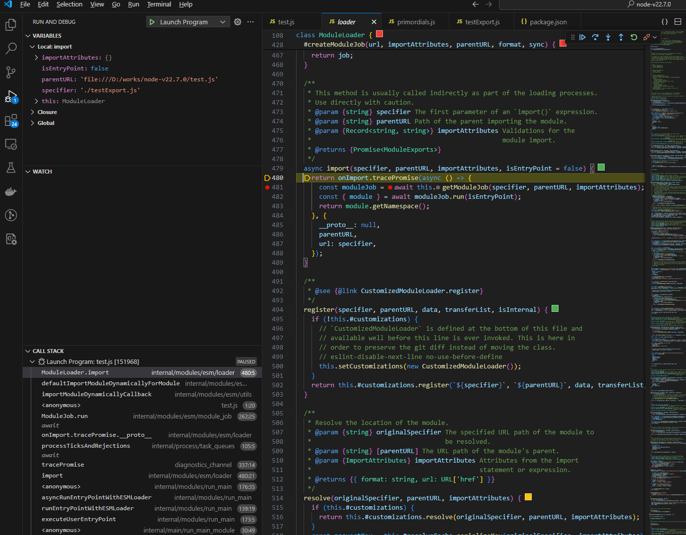 本文以 Node.js 22.7.0 源码为基础,分析 node 对这两个模块规范的具体实现(源码分析方法在最后一节有介绍)。