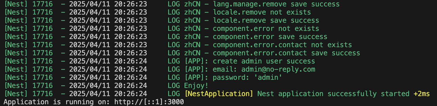 出现以下界面,说明后端启动成功: