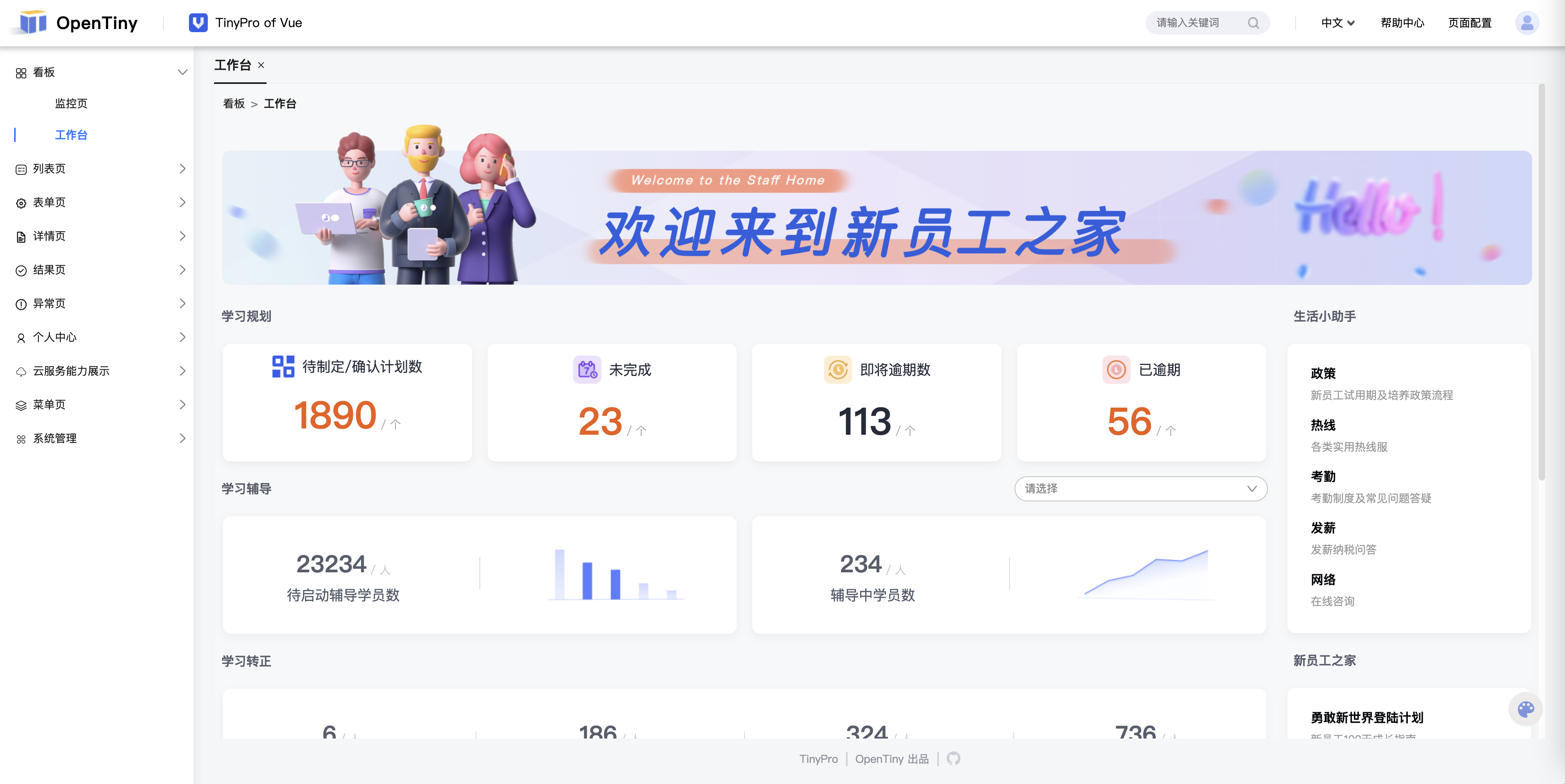 TinyPro 是一个基于 TinyVue 打造的前后端分离的后台管理系统,支持在线配置菜单、路由、国际化,支持页签模式、多级菜单,支持丰富的模板类型,支持多种构建工具,功能强大、开箱即用。