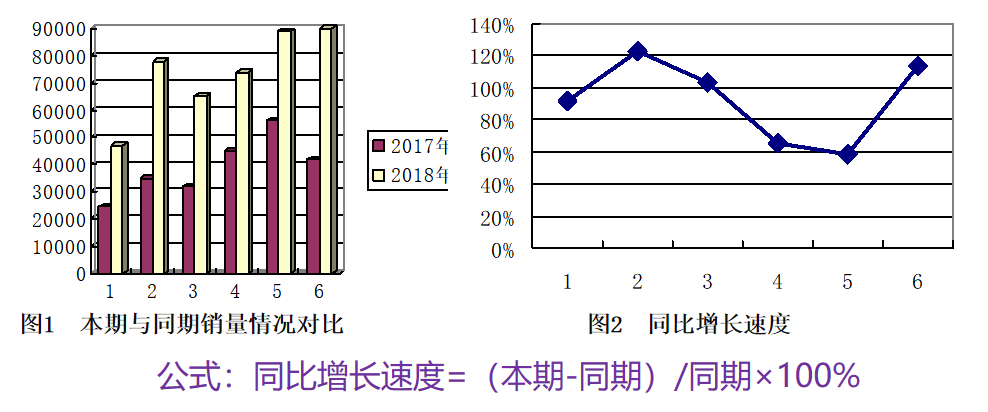 同比分析就是按照时间 如年度、季度、月份、日期等进行扩展,用本期实际发生数与同期历史发生数相比,产生动态相对指标,用以揭示发展水平以及增长速度。 同比分析主要是为了消除季节变动的影响,用以说明本期水平与去年同期水平对比而达到的相对值。