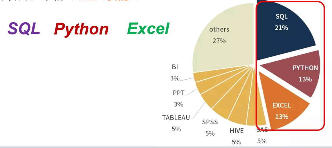 据某招聘网的数据显示,关键词“数据分析”前20页职位描述中,数据分析师要求前3的主要技能是: