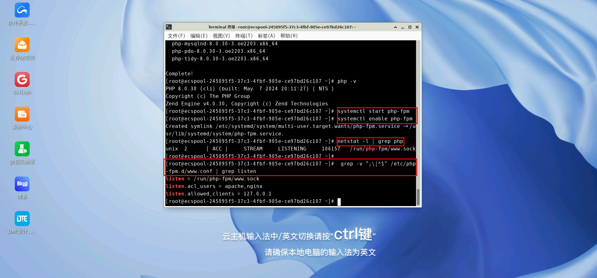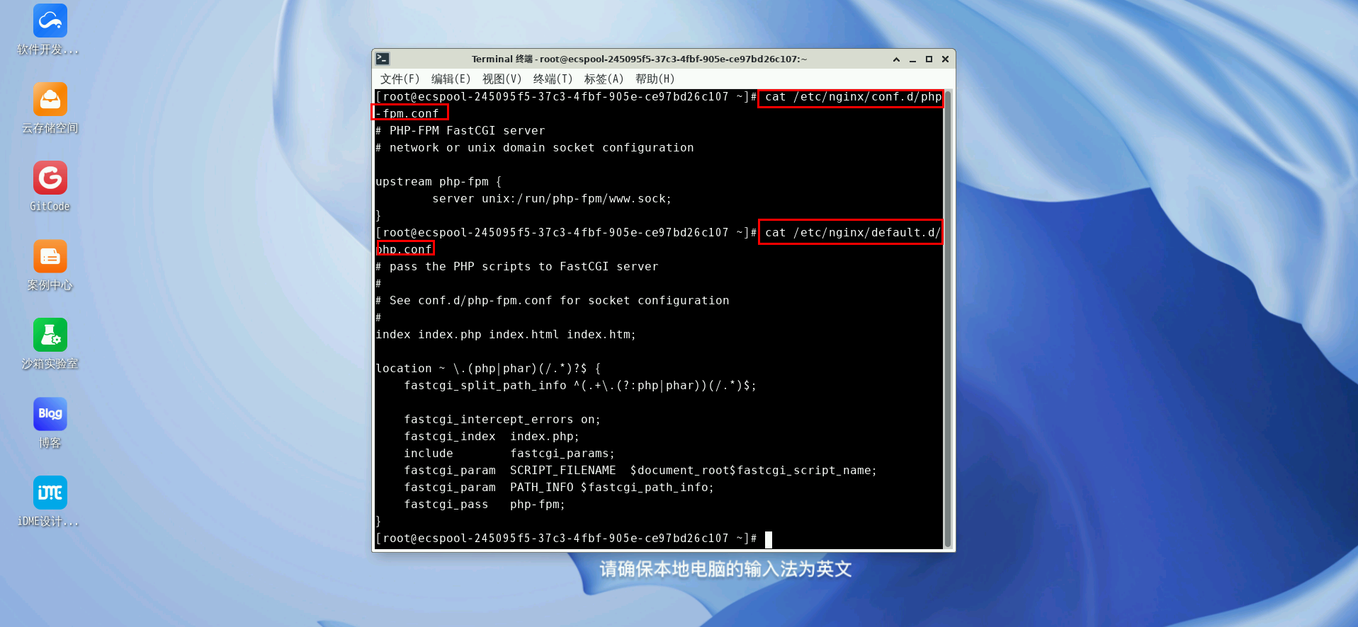 最后测试LNMP的PHP支持,在终端输入: