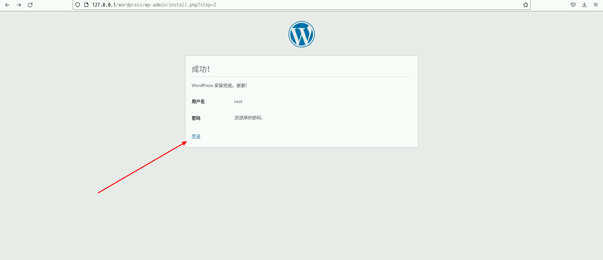 若WordPress安装完成,会如下图所示,然后点击登录,
