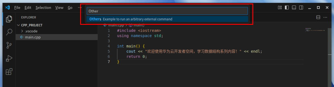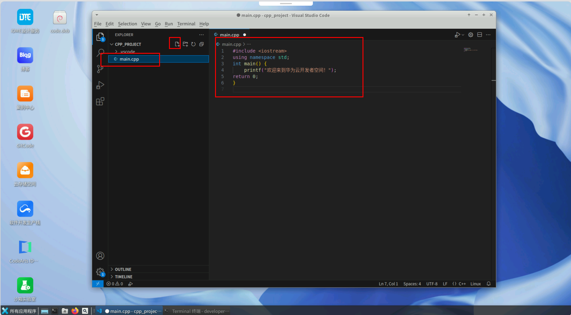 2. 在VS Code中,新建 main.cpp 文件,编写示例代码: