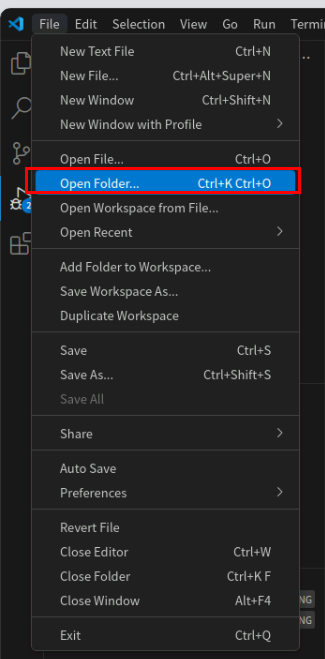 点击VS Code左上角File – OpenFolder,选择上一步新建的工程目录cpp_project。