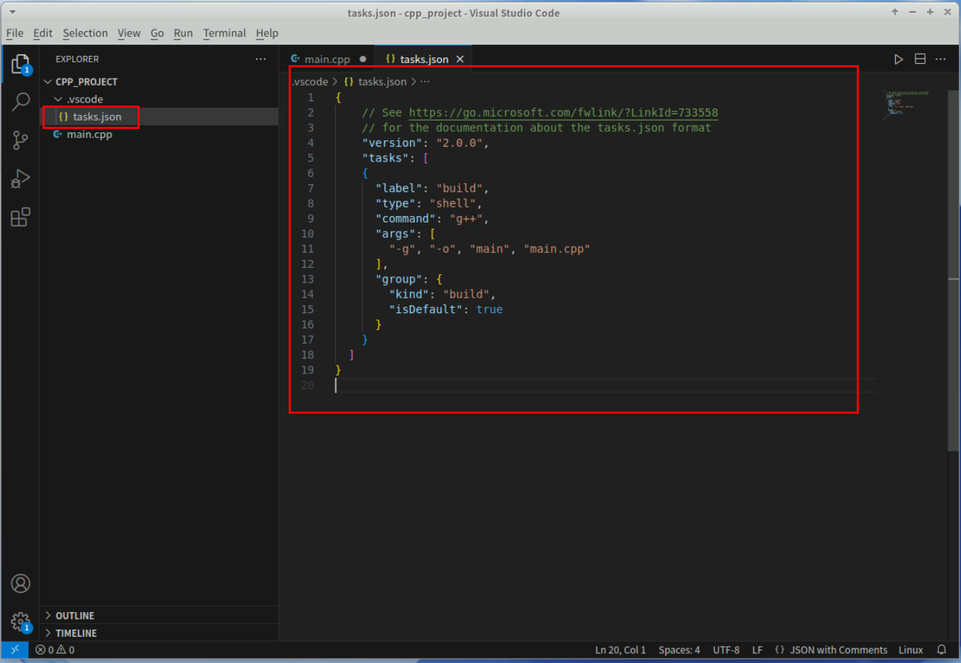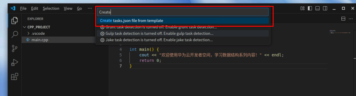 完成上述步骤后,工程目录中自动增加了配置文件tasks.json。