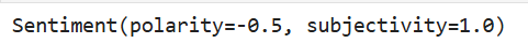 #情感分析 from textblob import TextBlob #要分析的文本是 text='I am baby,I feel sad today' #将要分析的文本作参数放到TextBlob()里面进行分析 blob=TextBlob(text) #sentiment()情感分析,#sententces,是一个分词方法;只有一句话所以,针对第一话分句 ; print(blob.sentences[0].sentiment) #Sentiment(polarity=-0.5, subjectivity=1.0) #Sentiment示文本的情感倾向程度 subjectivity表示文本的主观程度 |