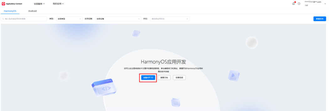 步骤1 登录AppGallery Connect官网完成注册登录等操作,网址:https://developer.huawei.cn/consumer/cn/service/josp/agc/index.html#/myApp 。