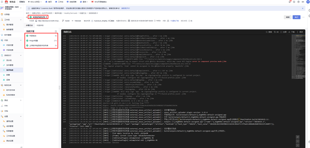 为了解决上述问题,华为云软件开发生产线CodeArts提供了鸿蒙应用的一站式开发能力,覆盖代码托管、代码检查、编译构建、二进制仓库、发布部署等多个环节,实现鸿蒙应用和元服务的构建打包和批量发布,解放本地算力,提升研发效率。