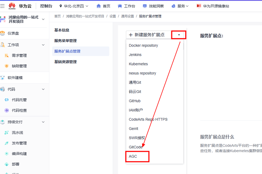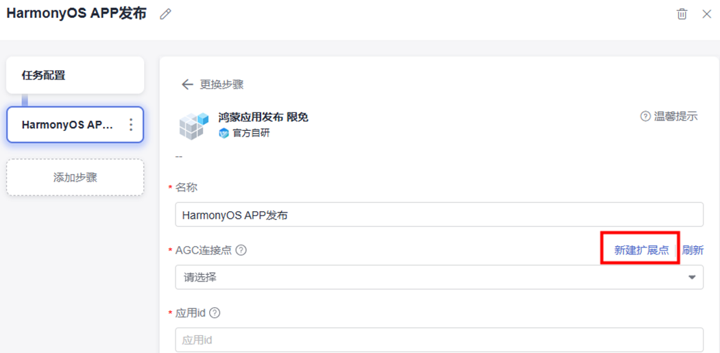 步骤4 点击AGC连接点右侧的“新建扩展点“进入扩展点配置页。