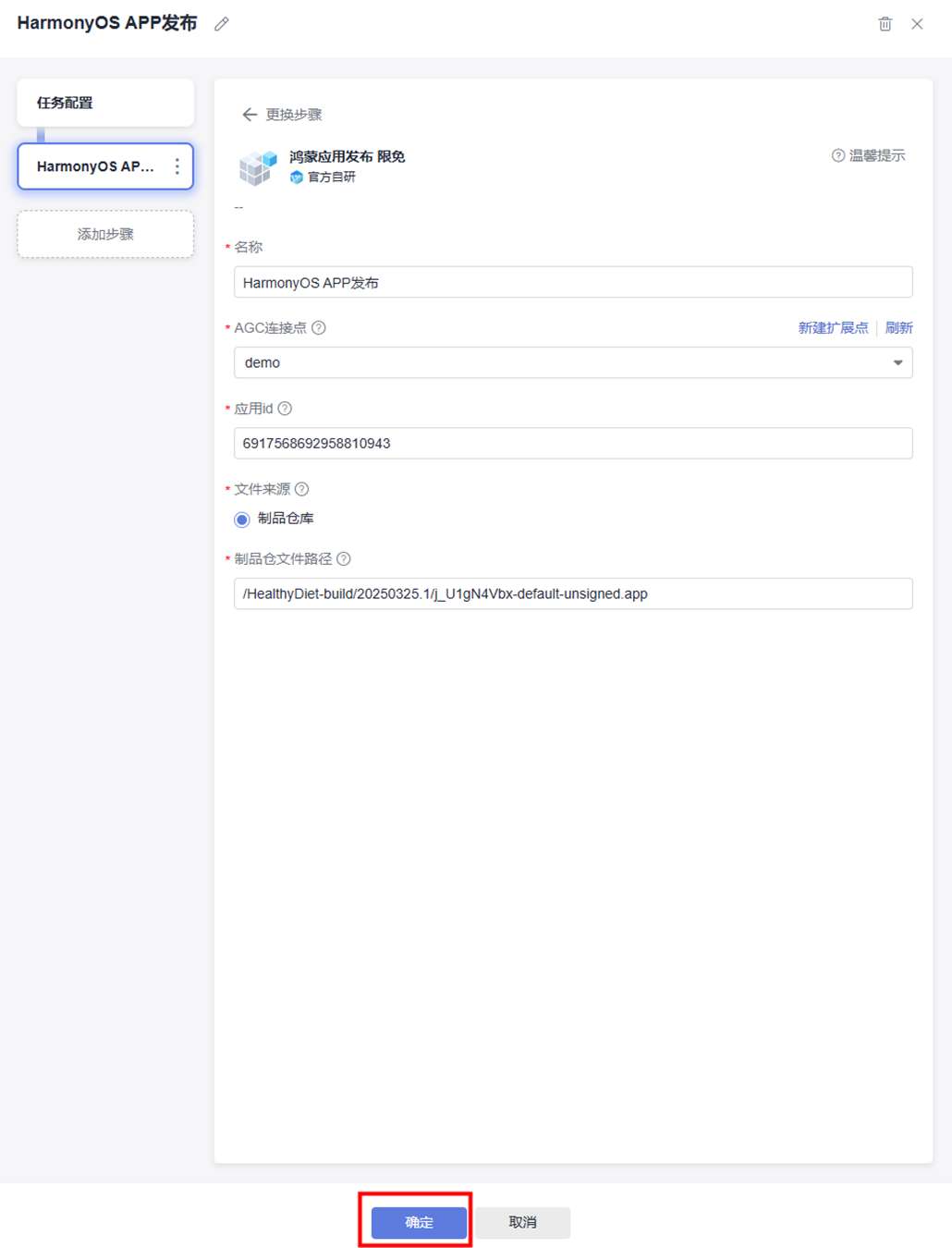 步骤10 所有的发布信息配置完成后,点击“确定“。
