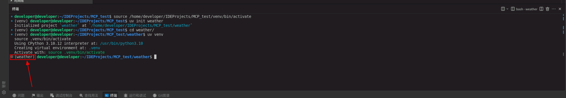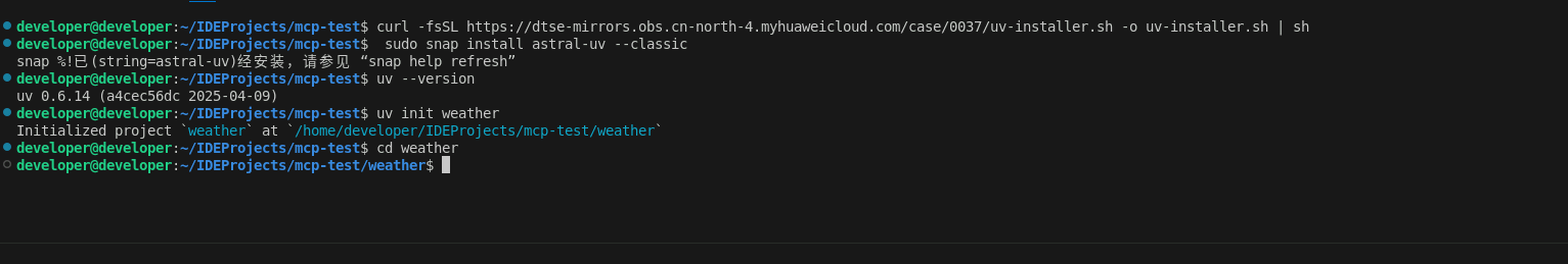 5. 执行以下命令安装MCP Server开发所需要的依赖包。