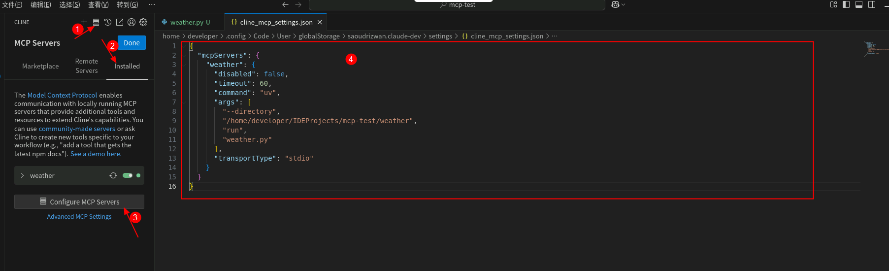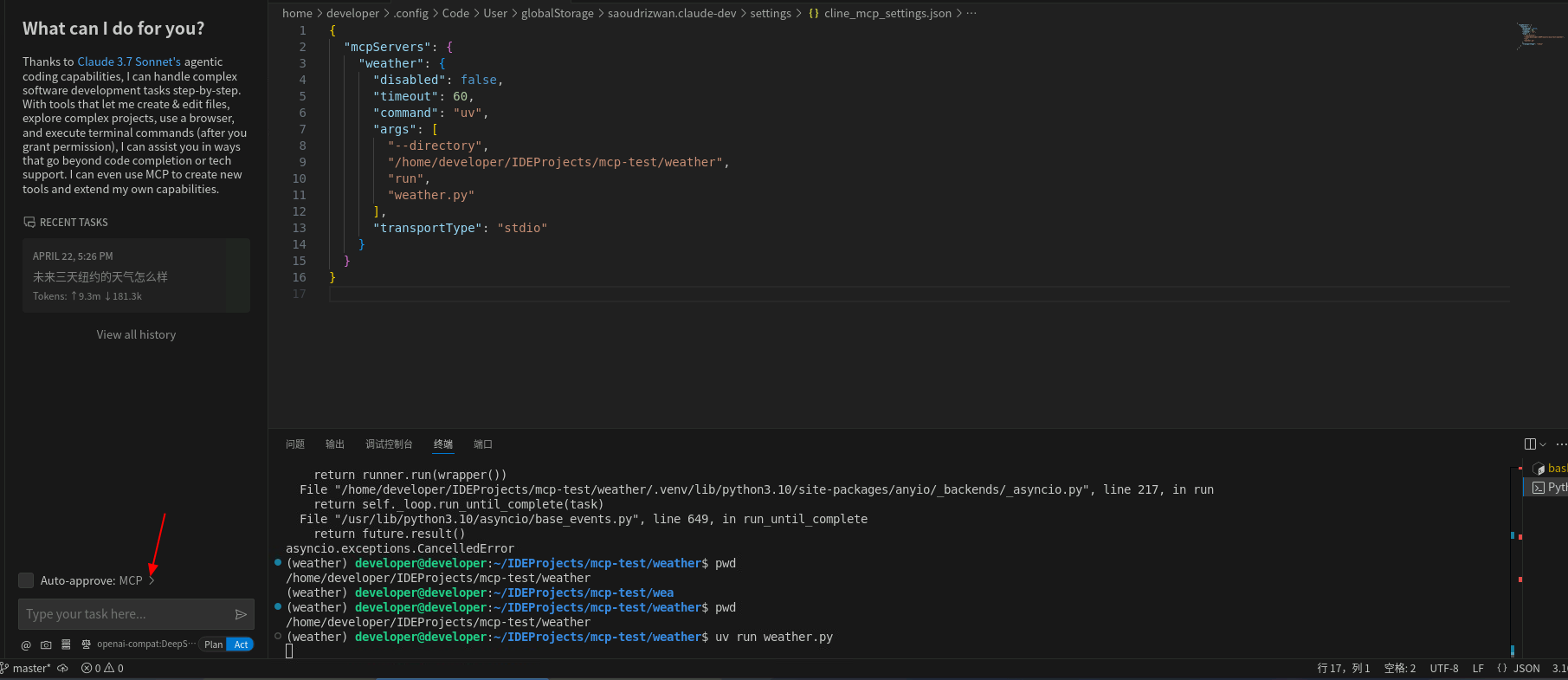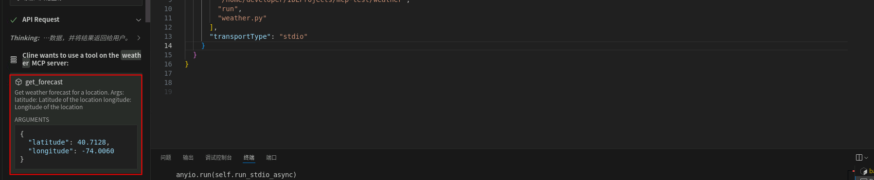 Cline插件调用MCP Server工具查询天气