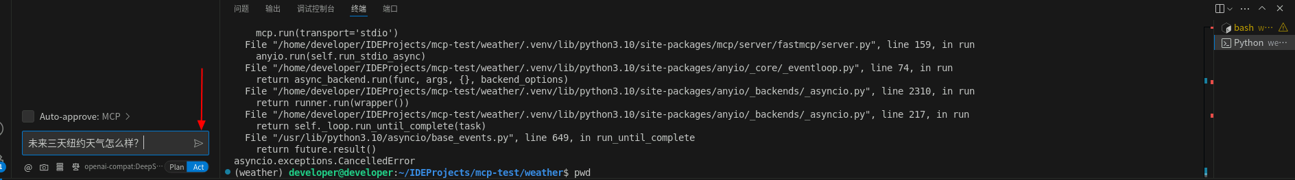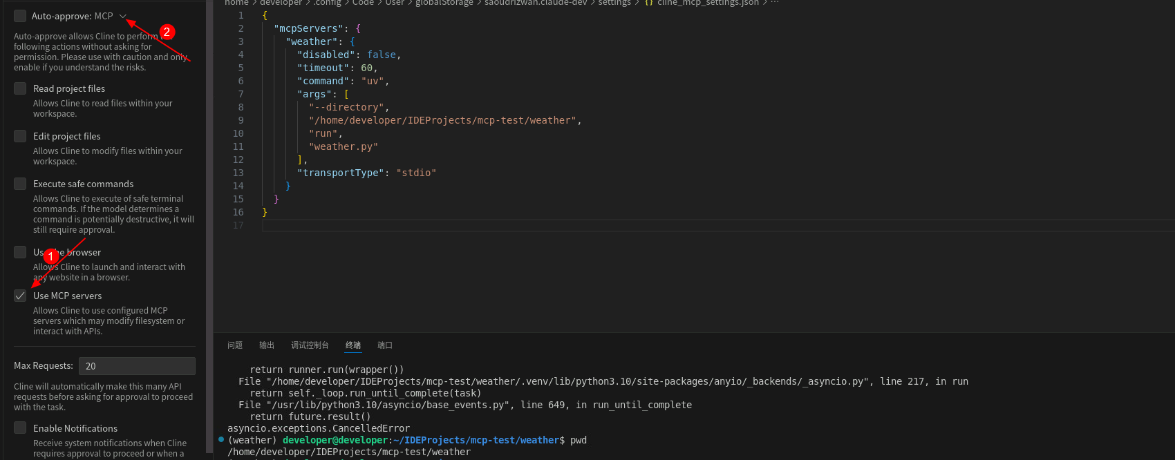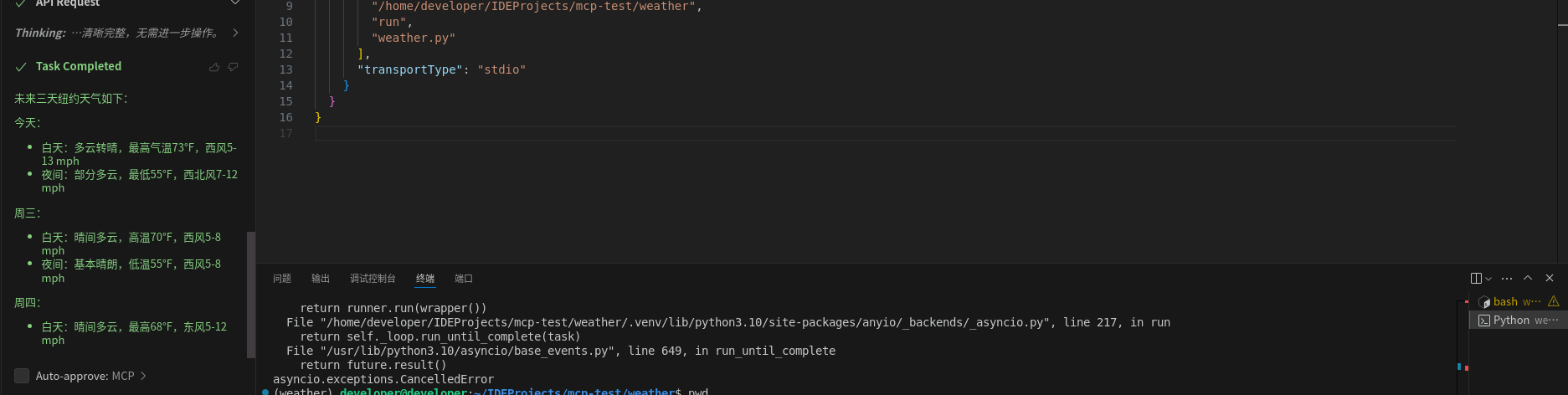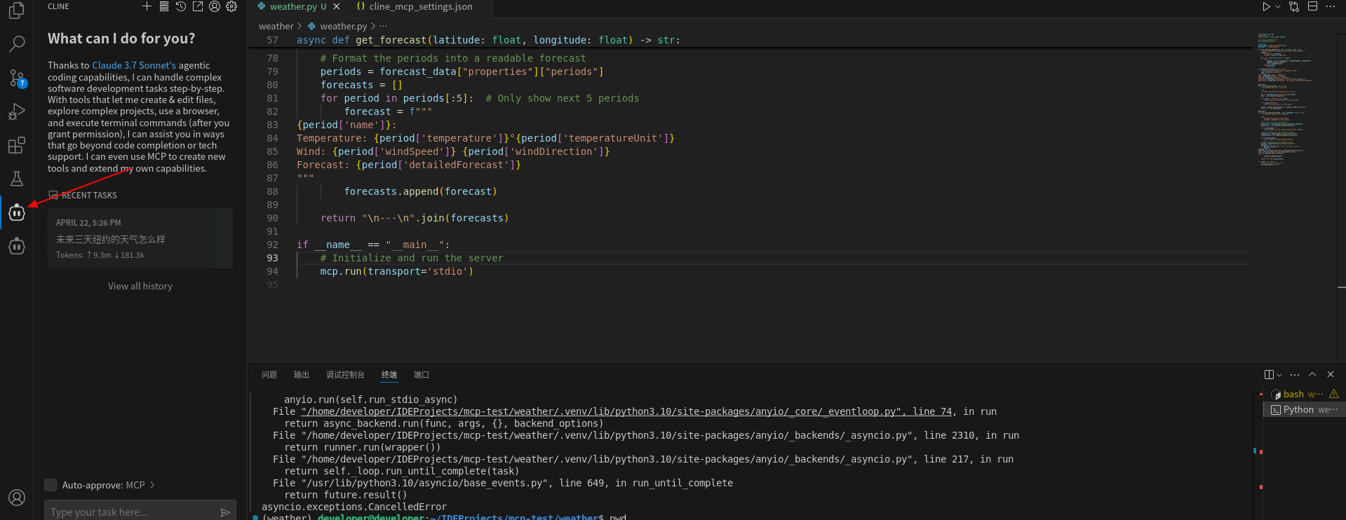 Cline插件调用MCP Server工具查询天气