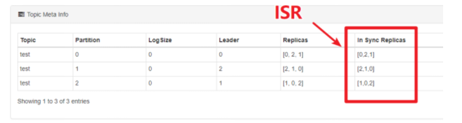 使用Kafka Eagle查看某个Topic的partition的ISR有哪几个节点。