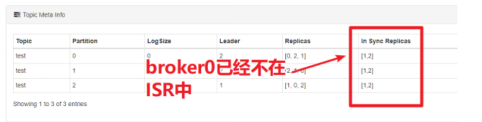 尝试关闭id为0的broker(杀掉该broker的进程),参看topic的ISR情况。