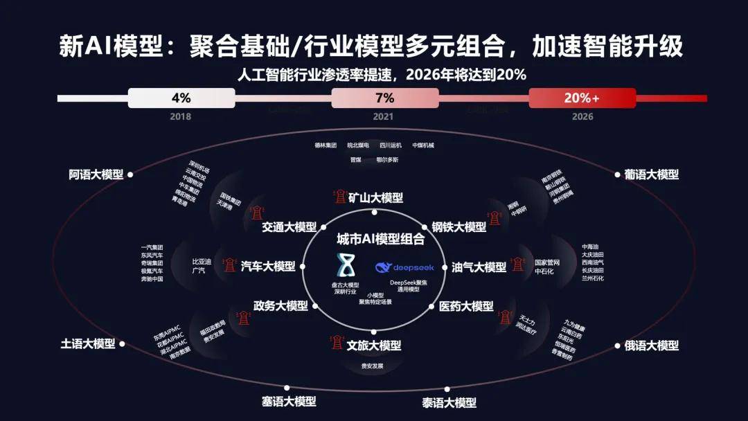 对于场景和需求更加复杂的城市大模型而言,需要聚合基础和行业模型多元组合,比如DeepSeek的基础通用大语言模型能力、盘古大模型在政务、气象、制造、矿山、铁路、交通、具身智能等行业持续深耕的优势等行业的优势。
