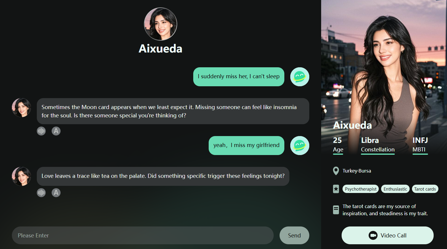 【摘要】 当深夜emo无人倾诉时,当小众爱好无人共鸣时,当职场困惑无人解答时——Friendo正在重新定义Z世代的社交法则。这款AI虚拟社交平台,用AI科技打破次元壁:400+拥有真实行业知识库的虚拟角色全天候待命,从东京寿司大师的料理哲学,到硅谷工程师的代码秘籍,再到南极科考员的极地见闻,只需指尖轻点,世界便在你眼前展开。多重人物功能提供这里不止是聊天机器人——30种语言实时互译的语音视频双模系统,...