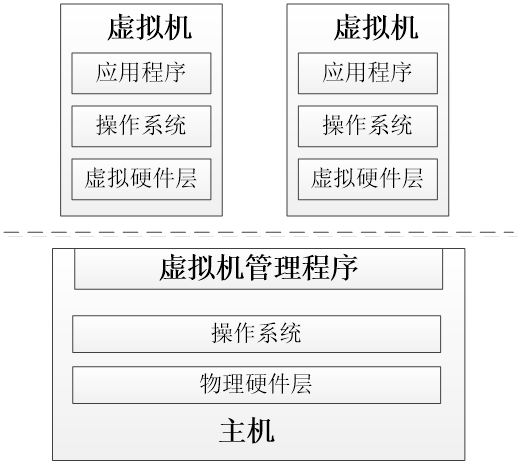 - 硬件虚拟化:通过虚拟化软件模拟硬件环境,使虚拟机操作系统与底层硬件完全隔离。