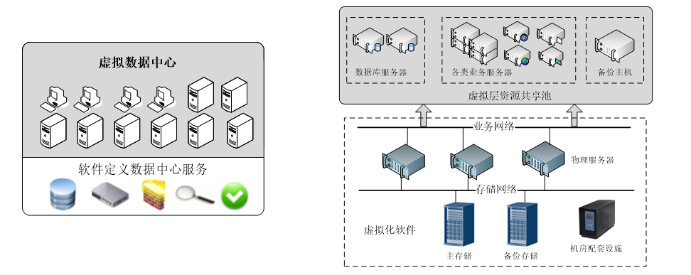 升级改造现有的IT基础设施,调整已有硬件设备,或添加新设备来建立新型的数据中心。 建设全新的虚拟数据中心。