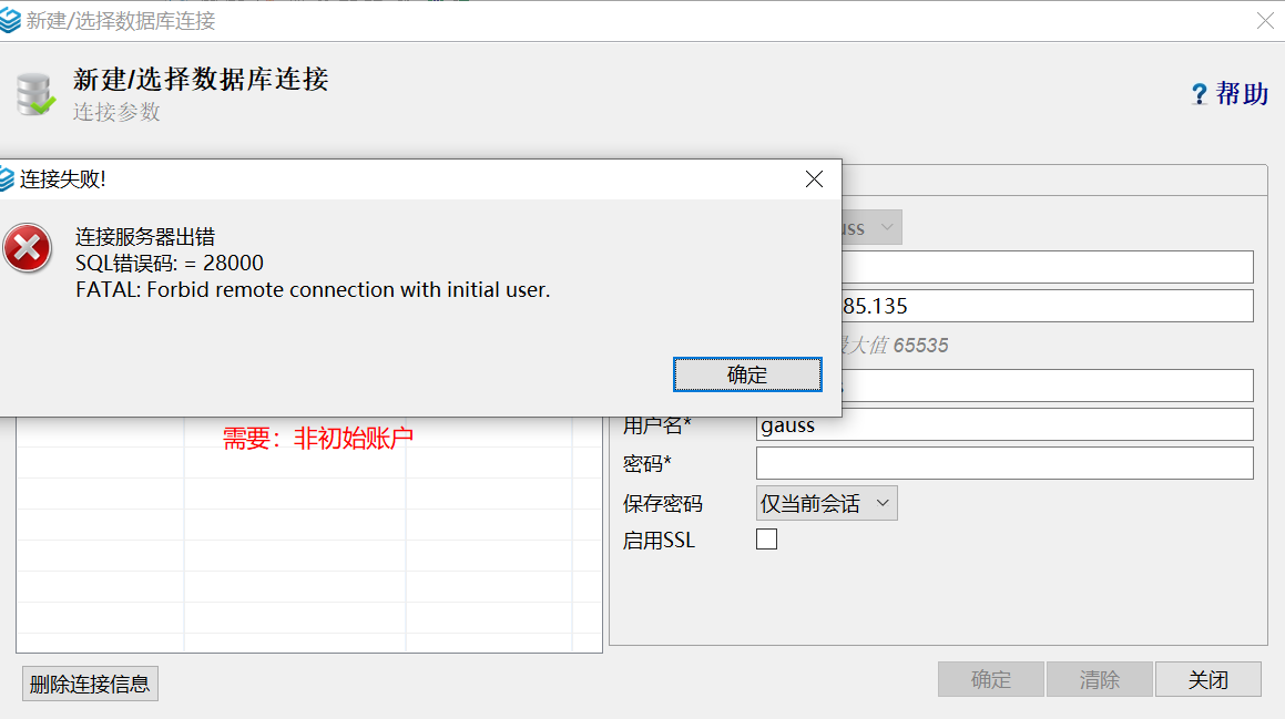 下面的这个bug是不能使用创建opengauss的时候默认账户(我们这里是guass)