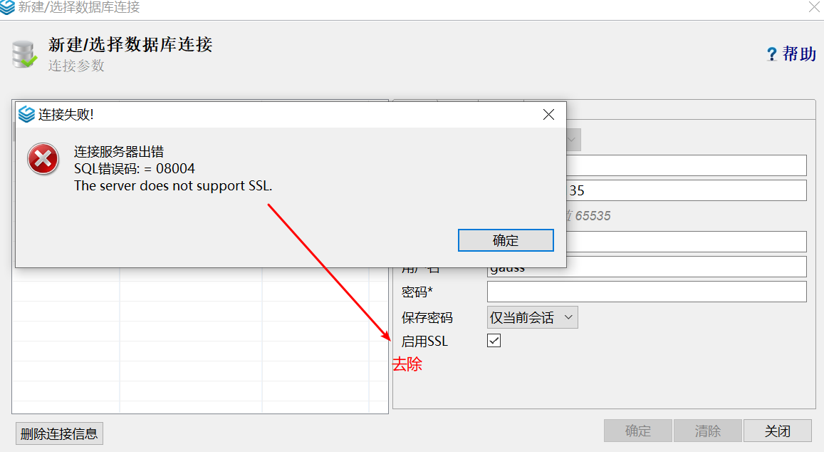 如果出现下图界面,取消SSL这个对钩即可。