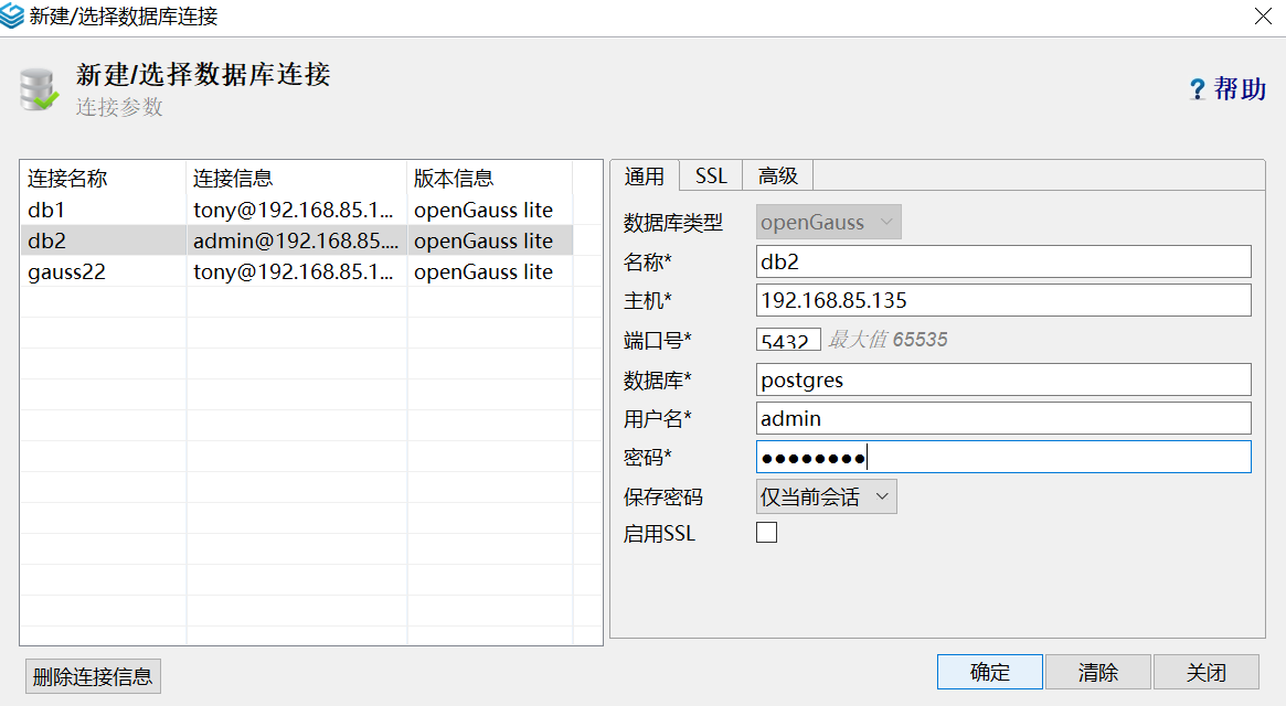 使用刚才你创建的角色/用户,去登录opengauss