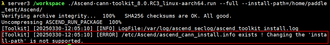 ./Ascend-cann-toolkit_8.0.RC3_linux-aarch64.run --full --install-path=/home/paddle_test/Ascend/