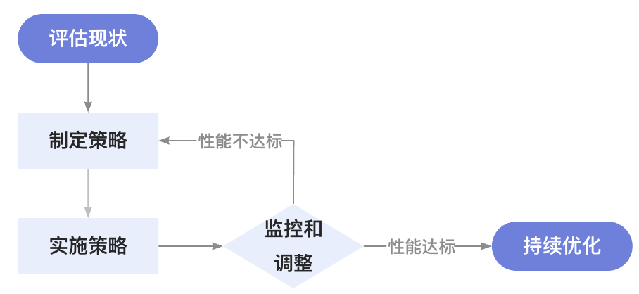 首先对企业现有的 AI 资源使用情况进行评估,然后根据评估结果制定策略,接着实施策略并进行监控和调整。如果效果达标,则持续优化策略;如果效果不达标,则重新制定策略。通过不断循环优化,最终实现 AI 资源利用率的提升和成本的控制。