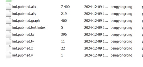 下载后的pubmed数据集总共包含8个文件,分别是ind.pubmed.x、ind.pubmed.tx、ind.pubmed.all、ind.pubmed.y、ind.pubmed.ty、ind.pubmed.ally、ind.pubmed.graph与ind.pubmed.test.index。每个文件的作用说明如下: