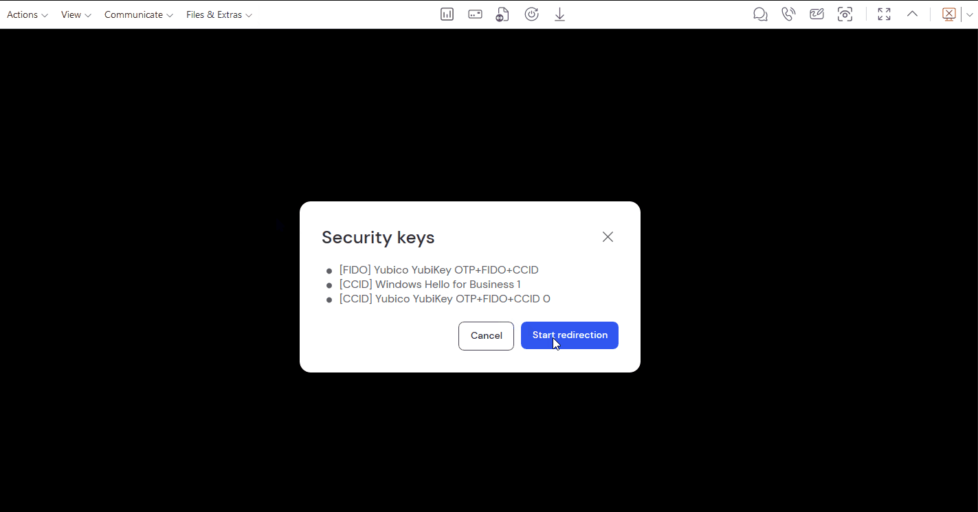 安装密钥重定向应该是 TeamViewer 比较特殊的一个安全功能了,远程需要手动安装虚拟安全密钥驱动程序。需要从远程会话中(本地)启用安全密钥重定向,当重定向开始后,插入本地计算机的任何兼容的安全密钥都将自动重定向。好处是如果没有你的密码和对安全密钥的物理访问权限,任何人都无法获得访问权限。