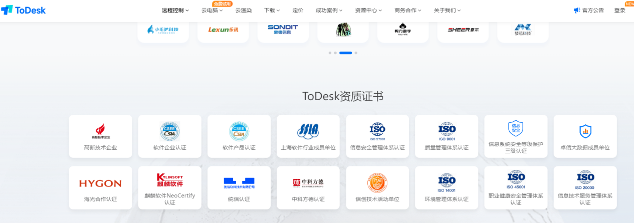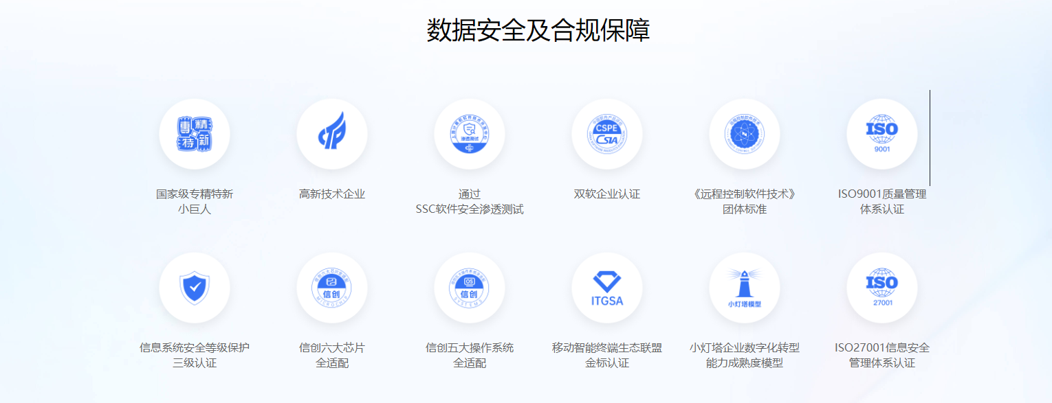 ToDesk 采用高规格传输协议、端对端加密技术及多层次安全防护机制,全面保障用户数据安全与完整性。已通过 ISO27001 信息安全管理体系、ISO20000 信息技术服务管理体系认证以及信息系统安全等级保护三级认证;同时依托自研 RTC 引擎与多重安全算法,在漏洞响应速度与风险拦截能力上表现突出;支持双因认证、设备绑定、IP 黑名单等防护功能,尤其是“二次验证保护”功能,这一项创新又实用的安全防护功能,目前未在国内其他远控软件上看到过。这些权威资质及安全功能都充分印证了 ToDesk 在信息安全领域的专业实力与可靠保障。