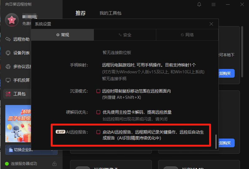 其实这三款远控控制软件都有用户日志上传功能,而向日葵结合目前AI做出了远控后自动生成报告的功能,不过精准度不高,还在优化中。