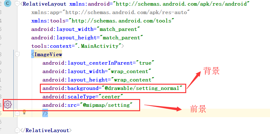知识点是来自于ImageView中XML的两个属性:src与background