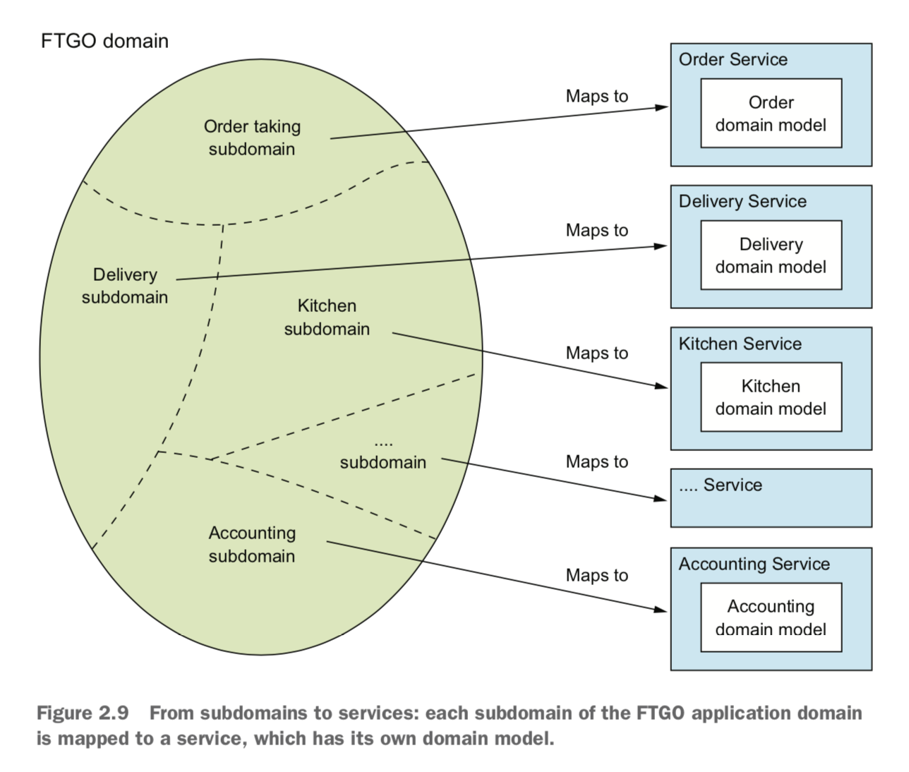 - 根据子域分解,子域围绕领域驱动设计(DDD)来组织服务