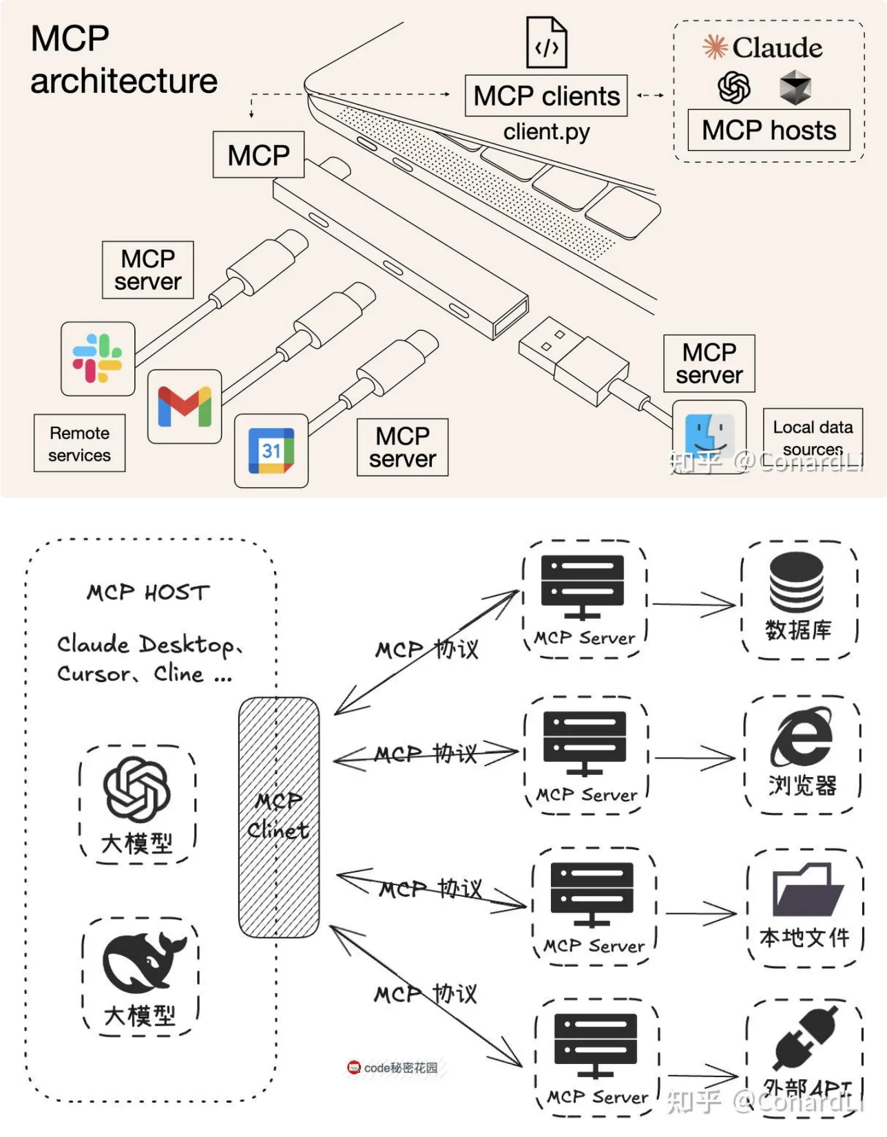 MCP (Model Context Protocol) 代表了 AI 与外部工具和数据交互的标准建立。MCP 的本质:它是一个统一的协议标准,使 AI 模型能够以一致的方式连接各种数据源和工具,类似于 AI 世界的"USB-C"接口。
