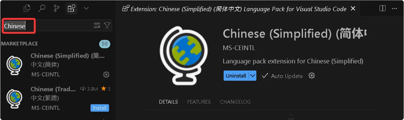 新建⽂件夹 gonglve,然后打开⽬录, 点击拓展,输⼊ Chinese 进⾏安装