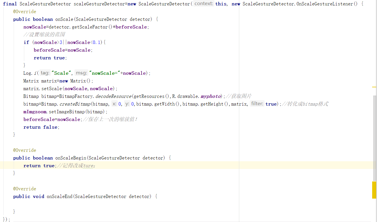 final ScaleGestureDetector scaleGestureDetector=new ScaleGestureDetector(this, new ScaleGestureDetector.OnScaleGestureListener() {