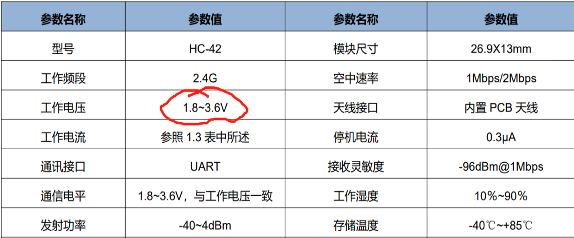 HC42 蓝牙串口通信模块是新一代的基于 Bluetooth Specification V5.0 BLE 蓝牙协议 的数传模块。无线工作频段为 2.4GHz ISM,调制方式是 GFSK。模块最大发射功率为 4dBm, 接收灵敏度-96dBm。