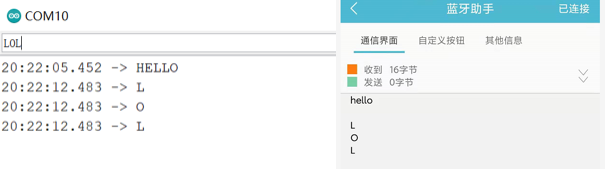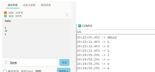 手机输入‘love’,arduino的串口监视器显示‘love’,而手机没有设置显示就不显示