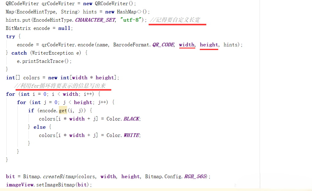 第二步:实例化QRCodeWriter后利用for循环将二维码画出来,然后用图片控件加载图片。